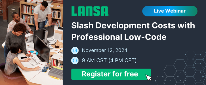 Join our webinar on November 12 to explore how Visual LANSAâs professional low-code can help slash development costs, tackle developer shortages, and drive innovation.